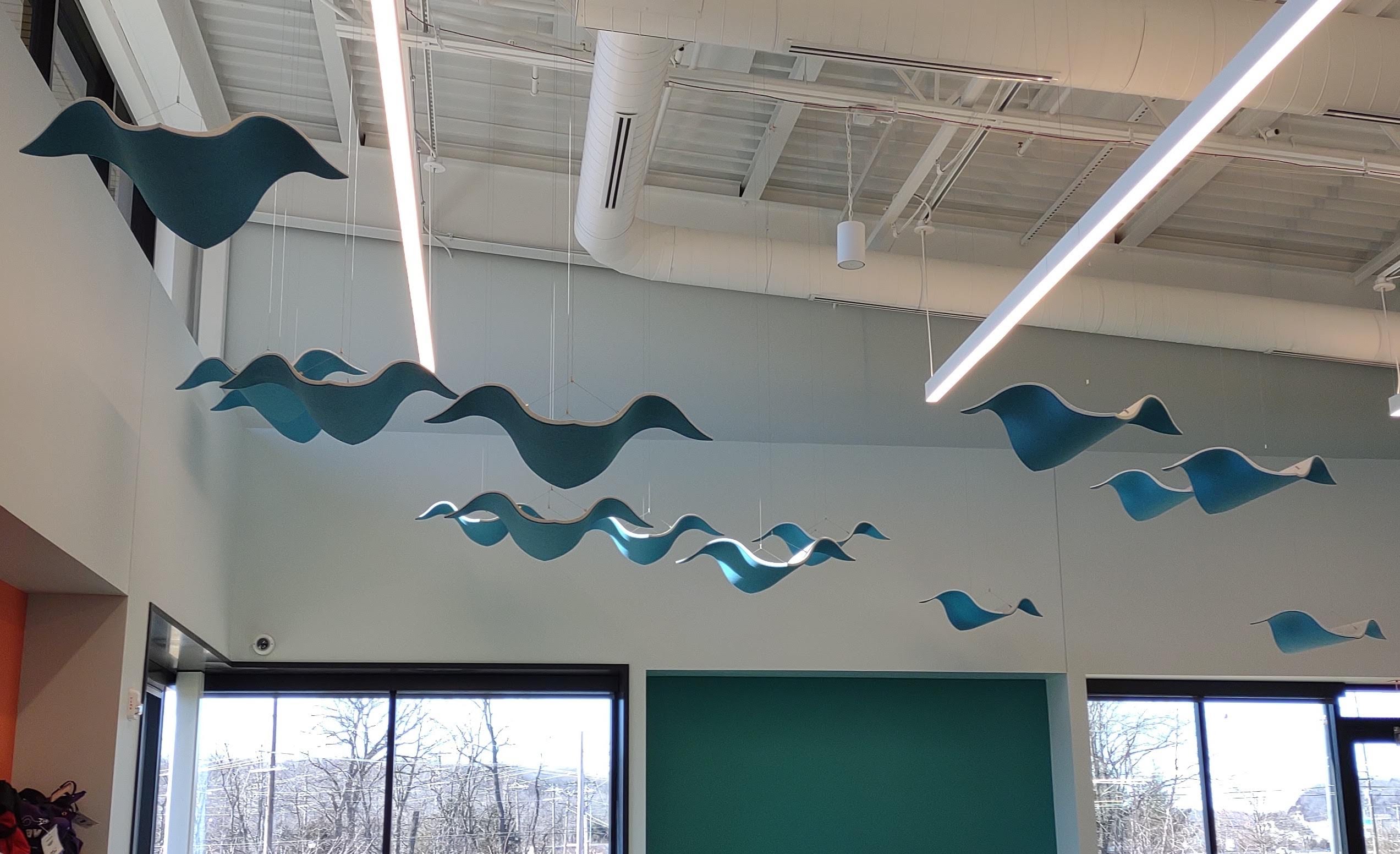 These paper cranes reminded me of one of my favorite features of the newly designed library in my town. In the children’s section, which I frequent, there are no paper cranes, but there are these bird-like structures hanging from the ceiling. They sway and rock above the shelves. I like to look at them from time to time, and I’ve noticed kids eyeing them as well. I sometimes point them out to my own children when they are particularly wound up, making me wonder if silence is still considered golden in this particular section of the library. I sure hope not! About seventy-five percent of the time pointing out “the birds” works. The other twenty-five percent, they are already too far gone. But during that oh so sweet seventy-five percent, I see the calming effect of a simple feature in the room.